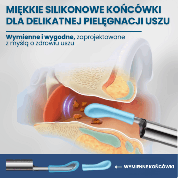 Tak! W zestawie otrzymujesz aż 6 wymiennych silikonowych końcówek oraz dodatkowy zestaw 7 akcesoriów do czyszczenia uszu.